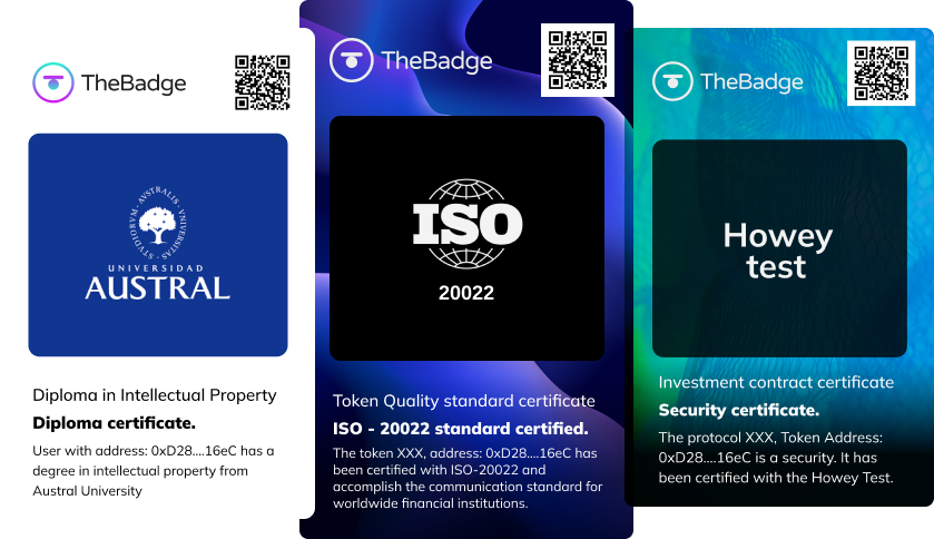This is because there is currently no way to connect these two worlds. TheBadge and its Web3 certificates allow this by wrapping a real-world certificate into a Web3 version of it.\ <br>